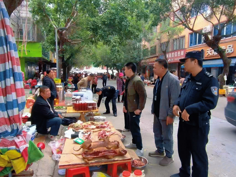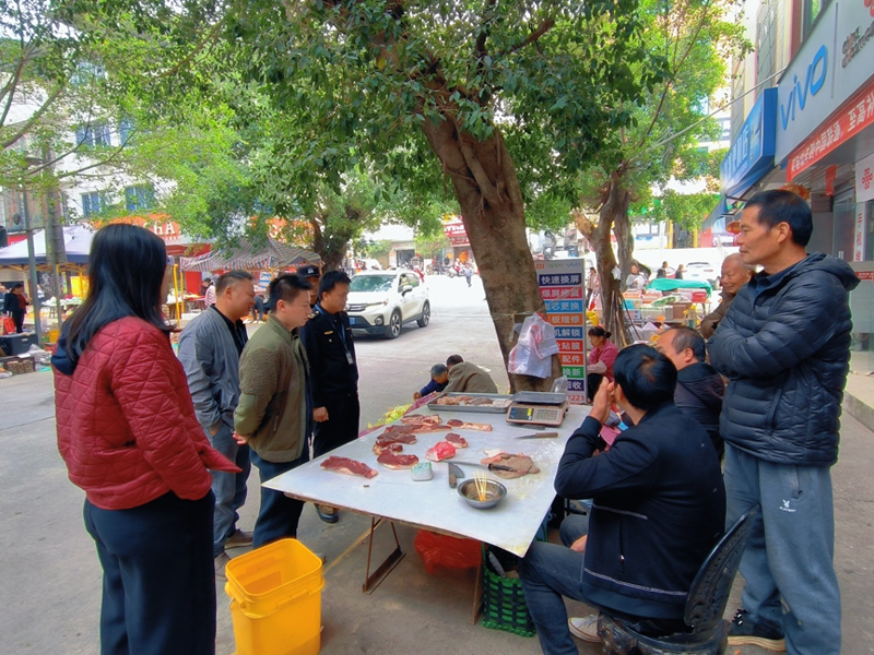 “食物平安没有‘零风险’,但监管必需‘零’。”时值岁暮平安防备环节阶段,同时外来肉类摊贩增加,给江口乡肉类食物平安提出新的要求。平安肉,江口乡于日圩日买卖高峰时段,组织市场监管所、、乡分析法律大队开展结合专项整治步履,出力规范市场次序,守稳守牢群众的“肉盘子”。